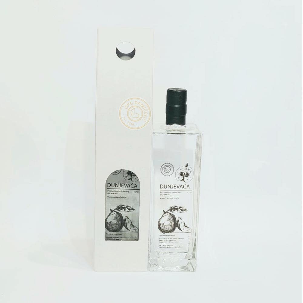Ripe quince is subjected to cleaning, wiping, washing, and removal of all lupine. After fermentation, denjevac brandy is produced in a copper cauldron. The percentage of alcohol in this brandy with a sweet and rich scent of quince is 40%.