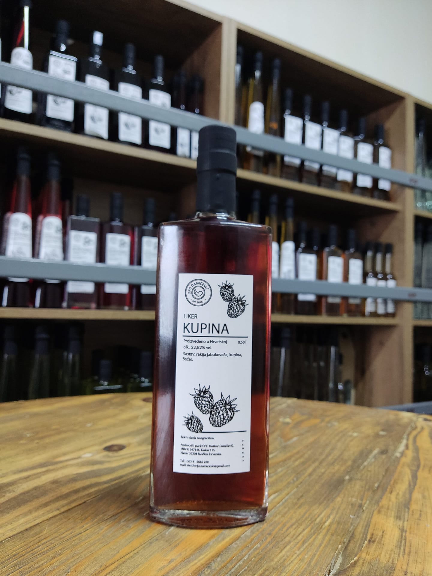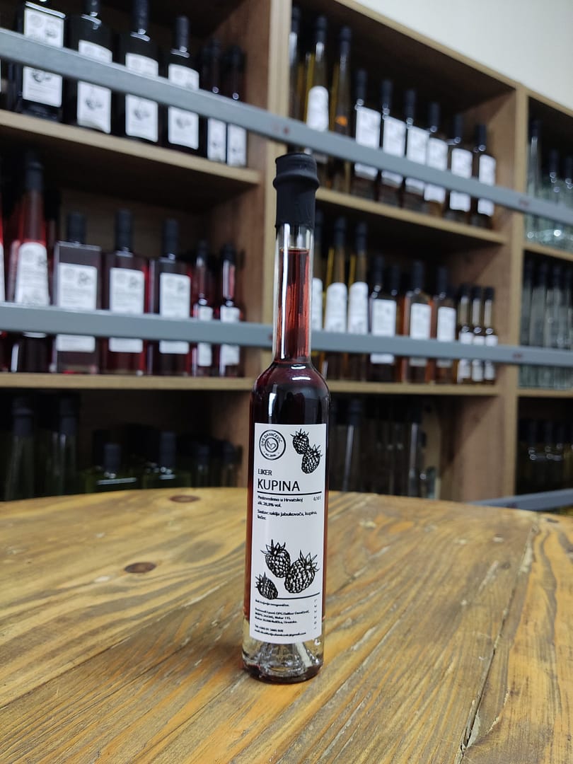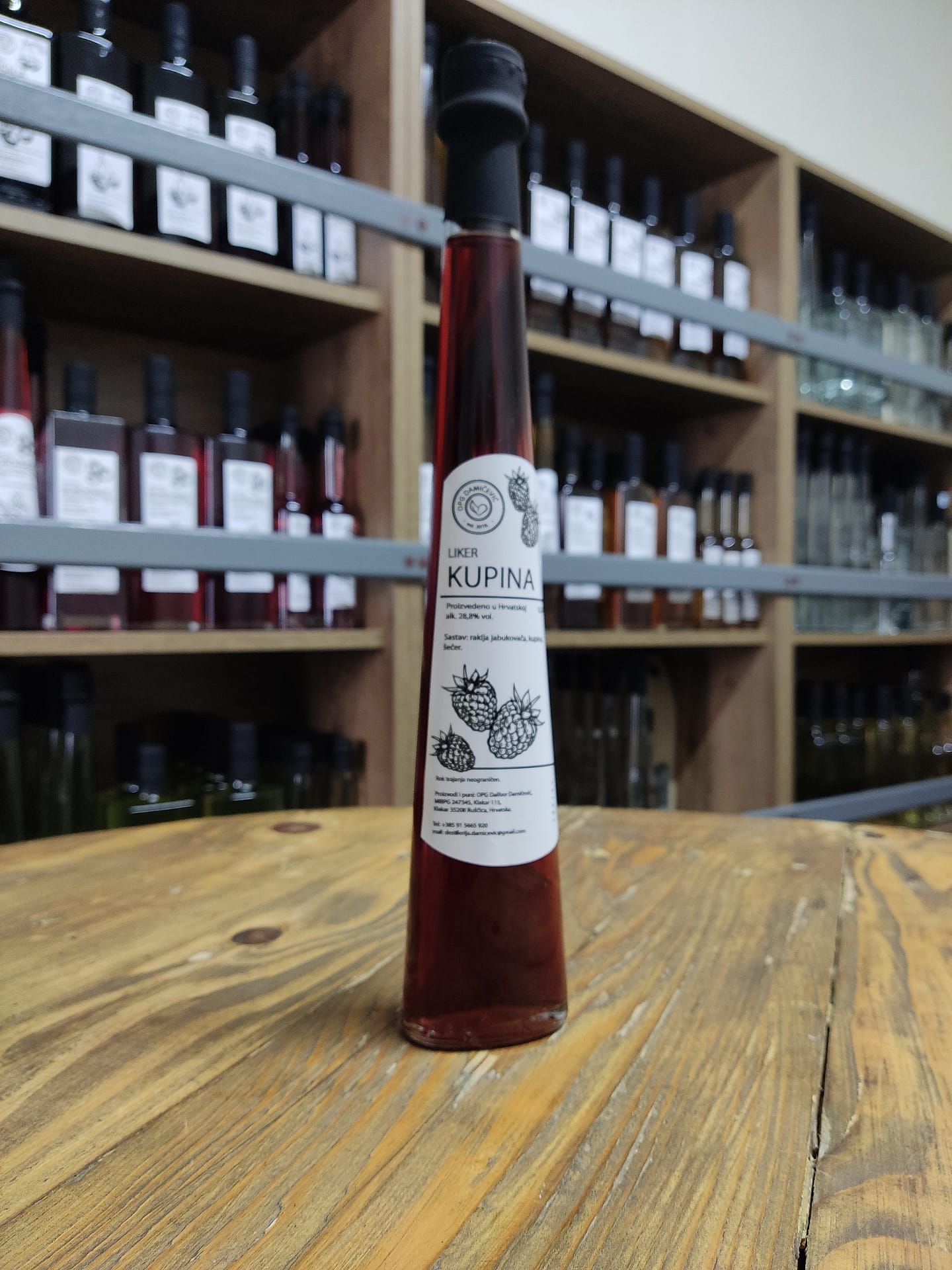 Liker od kupine nastao je maceracijom pažljivo branih kupina iz našeg netretiranog voćnjaka u rakiji jabukovači. Karakterizira ga bogata tamna boja i slatkast okus, s 28,8% alkohola, pakiran u boce od 0,1 do 0,7 litara.