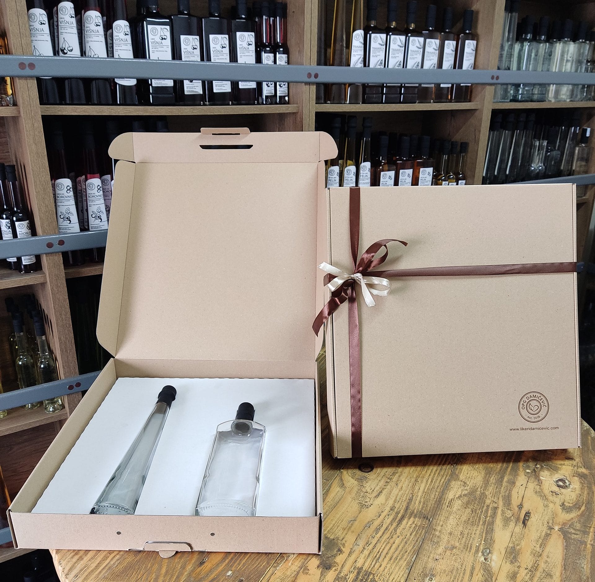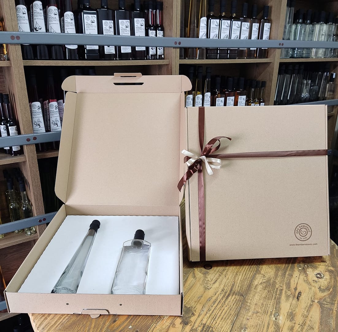 Poklon paket Bećar – Uživajte u neodoljivoj kombinaciji rakije i likera – 0,5 L voćne rakije i 0,2 L likera u jednom pakiranju.